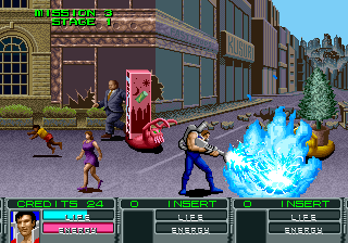 : Alien Storm is more or less your typical beat em up side-scroller but something about it is just hilarious. You have the stupid characters; the token hot chick, some guy that looks like Elvis and some guy who looks like a Cylon from the old school Battlestar Galactica. They fight mutated people and objects like trash cans that turn into aliens and it goes at an incredibly fast pace. So it’s pretty fun despite it’s lack of ingenuity