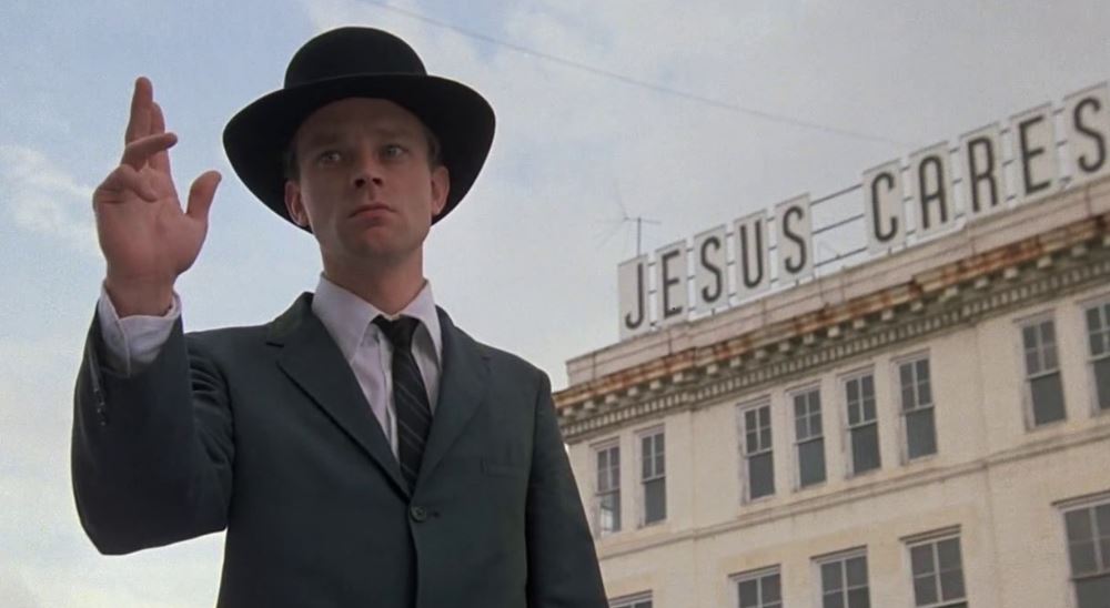 The film itself is vignette-heavy. It doesn’t so much follow a plot as string together the misadventures of Hazel and friends. This isn’t surprising when you consider that Flannery O’Connor, famous for her short stories, compiled Wise Blood from several preexisting stories she’d written.