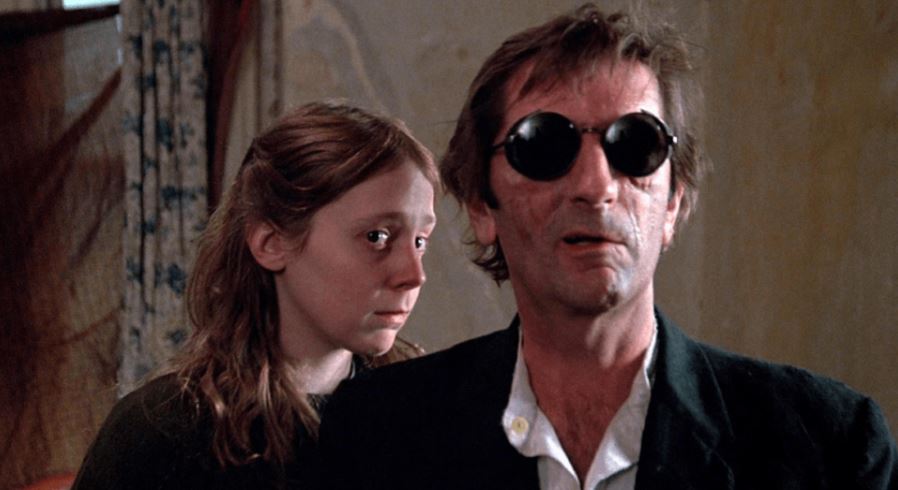 Brad Dourif plays Hazel, a quiet but proud and determined veteran who is resolute in not following in his father’s footsteps of becoming a preacher (his father is played by John Huston in flashbacks). But after being mistaken for a preacher by how he acts and dresses, and after being angered by conmen like Asa Hawks (Harry Dean Stanton), who pretends to be blind, and Hoover Shoates (Ned Beatty), a swindling promoter, Hazel becomes an anti-religious preacher.