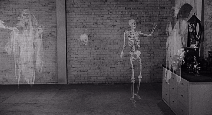 “How is the film apart from all the bells and whistles?” Oh, it’s fine. It’s about as cliché a ghost story as you can get: a father (Charles Herbert) inherits a huge house from his recently deceased occultist uncle. They move in, see ghosts, want to leave, discover they aren’t allowed to sell the house, and have to figure out how to stop the ghosts. The premise is so familiar but also the movie is old enough that you wonder, “Was this the first movie to do this idea?” But I doubt it.
