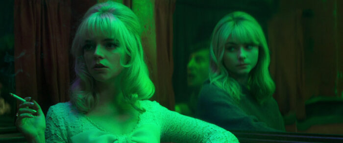 The first night Ellie sleeps in her new bed, she awakens in the Swinging Sixties as Sandie, an aspiring singer played by Anya Taylor-Joy, who I feel like is also sometimes an aspiring singer… maybe? She does her own singing in this. Sandie bursts onto the scene: eminently confident in her abilities, she goes straight to Café de Paris and demands that the owner hire her. Instead, she’s directed toward Jack (Matt Smith), who immediately waves a bunch of red flags for us viewers but promises her the world and sweeps her off her feet. The next morning, Ellie awakens revitalized and starts turning her experience as Sandie into inspiration for designs at school, garnering her much praise. But, instead of blossoming and developing a life of her own, Ellie rushes home every night to experience more of Sandie’s story. And as things begin to go sideways for Sandie, it starts to take a very real toll on Ellie too.